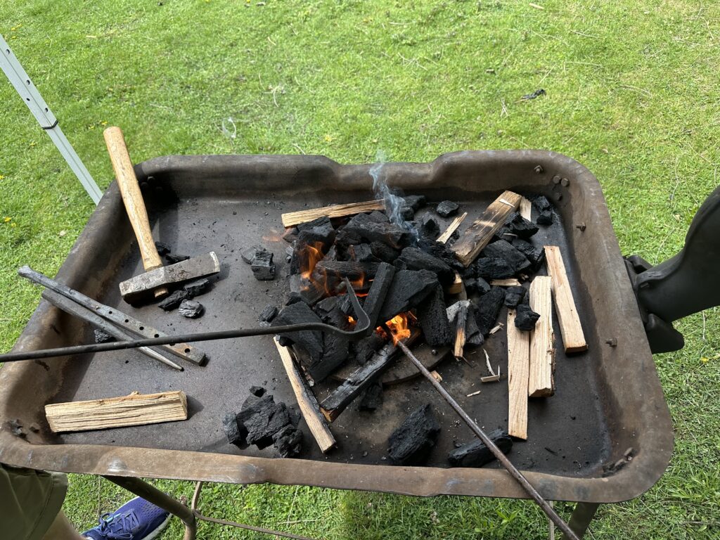 This photo is from the making of the first nail, when we had more smaller pieces of wood.